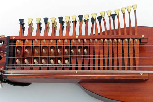 ![]() ![]() ![]() ![]() ![]() SEK 25 000 Here is a maker who within only a few years has achieved a very high quality both in his craftsmanship and in the tone quality. With a beautifully curly maple bottom and a top made of the best alp spruce tree the tone is both soft, strong and resonant. The top of the nut is made of ebony and the peg board has the guitar like shape so that the strings run straight and easy. At the middle of the A-string the keys are bent slightly downwards to create a shorter hold for the fingers. The weight is low and the length is just over 90 cm/35,4 inches = a short case. If you are tall or have long arms you can order an attachable prolonging for the string holder. This kind is usually in stock. Available in both dark brown or light brown body and keyboard. Like all my nyckelharpas this one is carefully adjusted and tempered for the best sound and to be in tune with all other kinds of instruments. |
